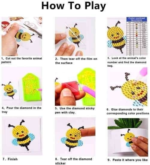5d Diamond painting 12 stickers the Animals Drill إستيكرات الحيوانات كرتون رسم بالماس