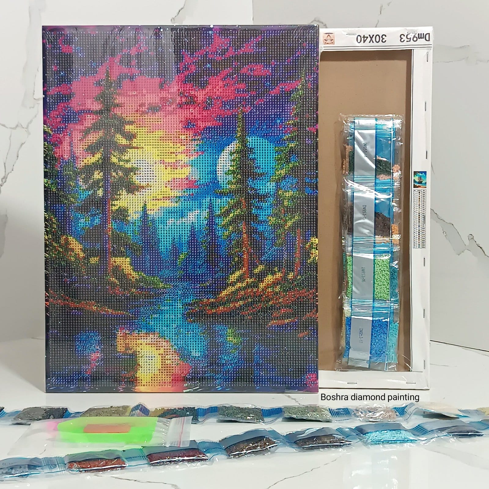 Boshra Diamond Painting Egypt Forest Frame & AB Full Round Diamonds 30*40cm لوحة ماسية الغابه بإطار خشب و دايموند إيه بي