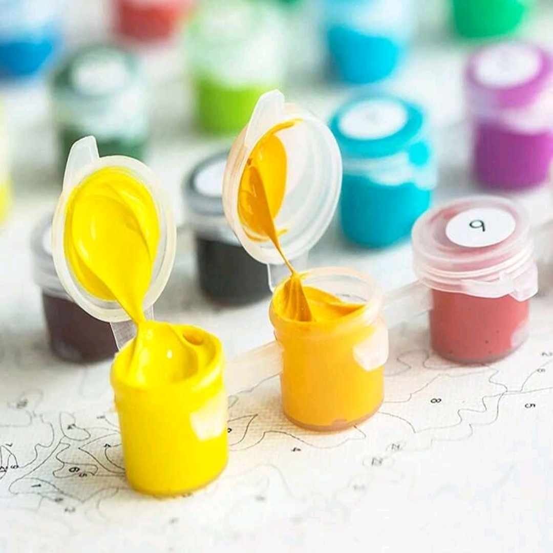 اللوحه تأتي معها 3 فرش والالوان الاكريلك الخاصه بها وبالت